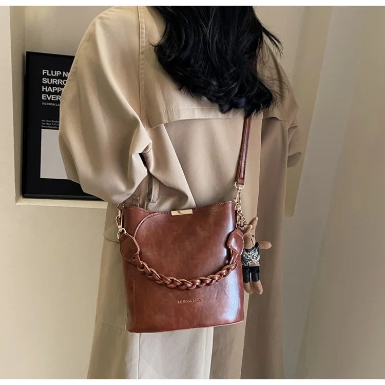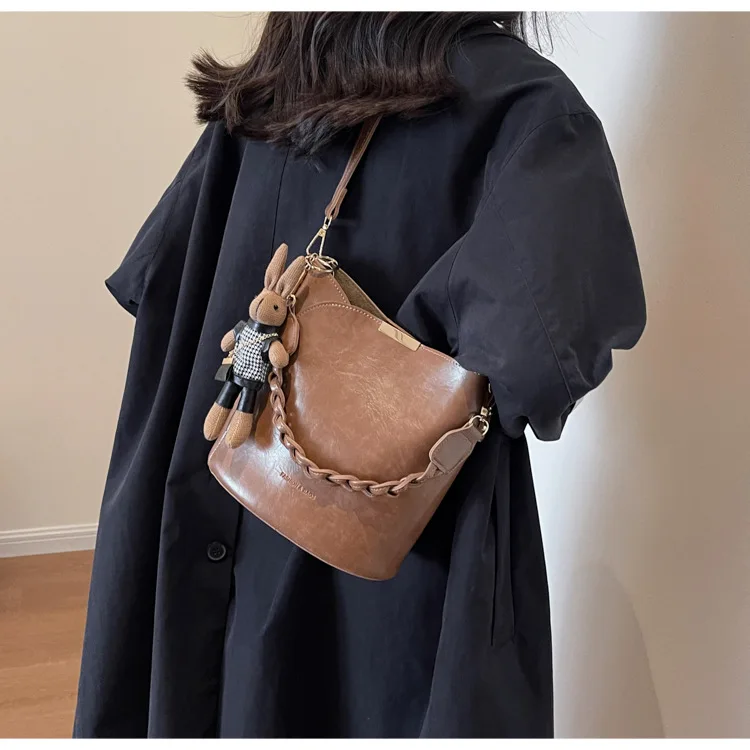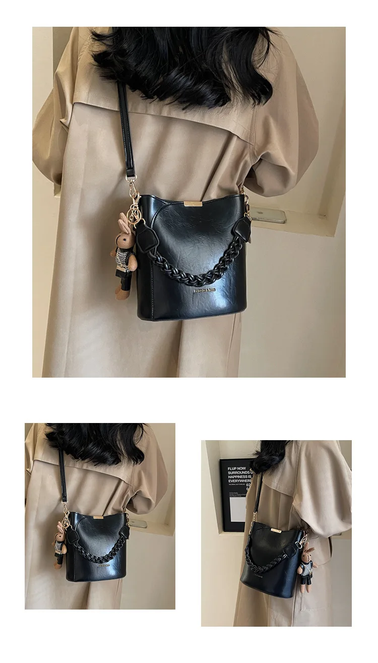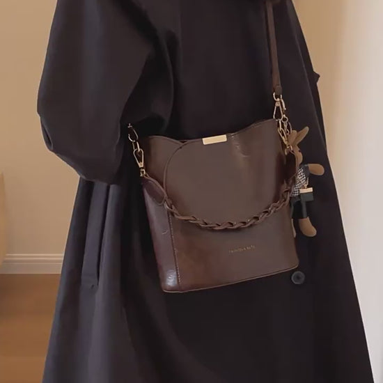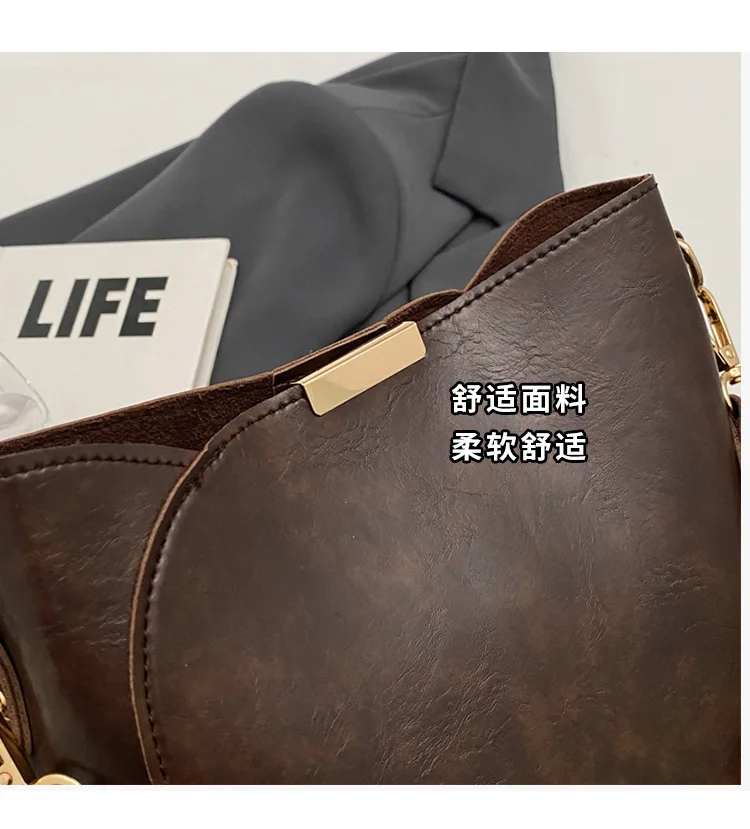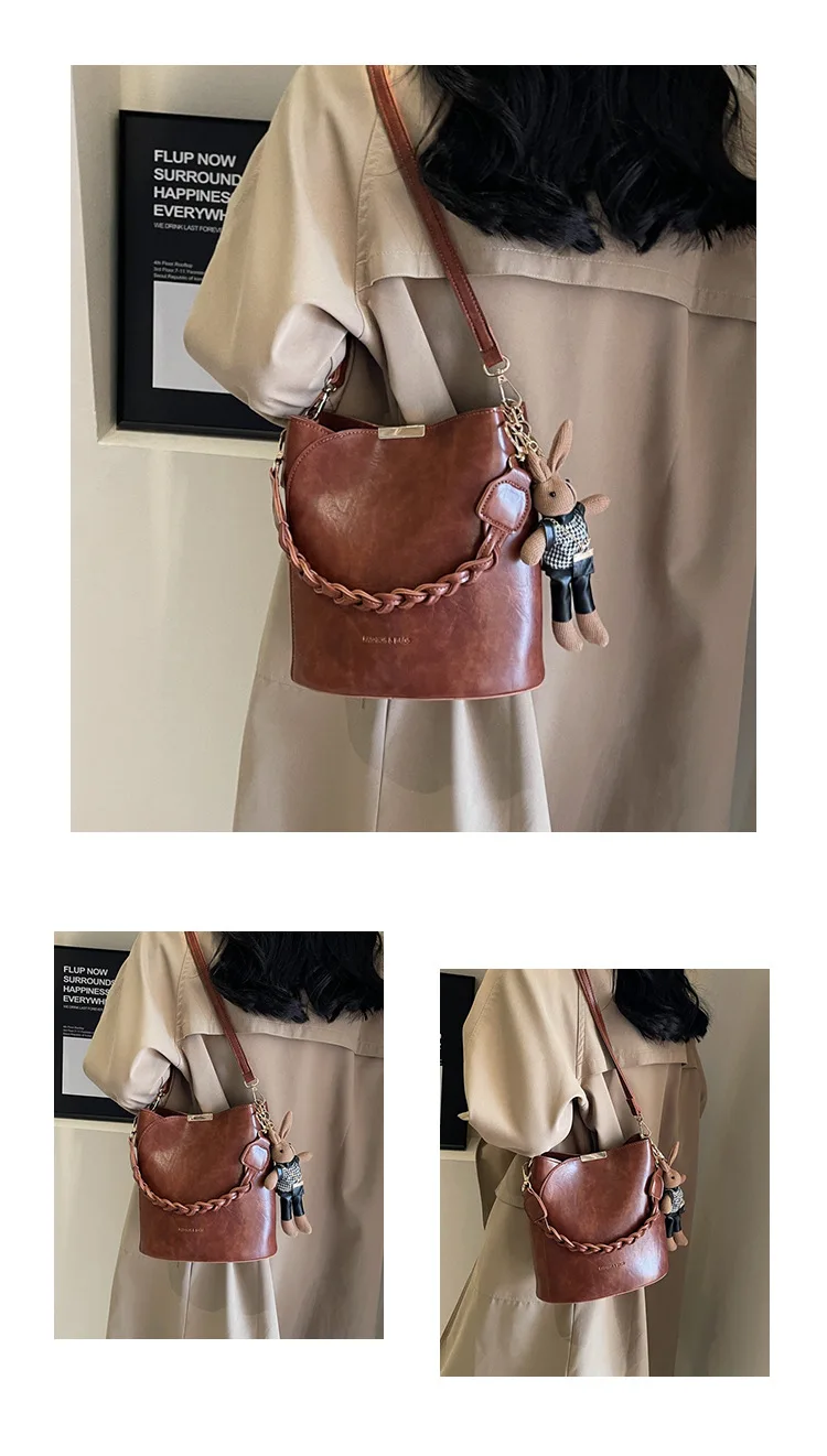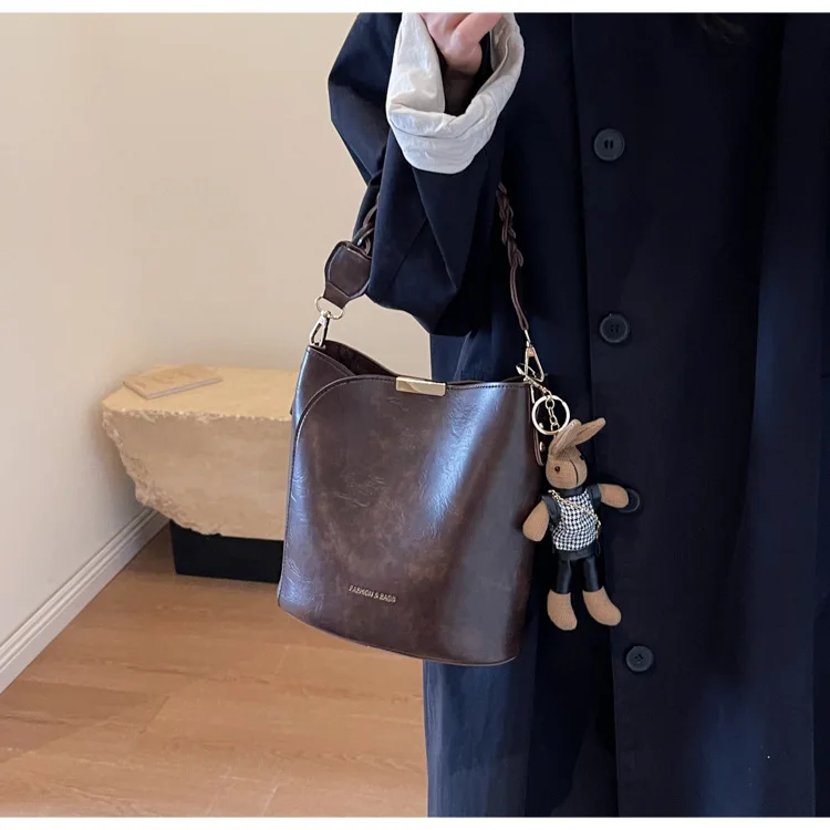 2025 Vintage Bucket Bag Women Retro Crossbody Tote Designer-Style Full Grain Leather Girls Shoulder Purse Must-Have Handbag