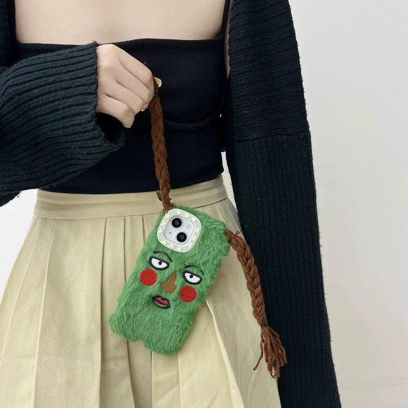 Funny cartoon braided girl iPhone 17 case | hairy anti-drop